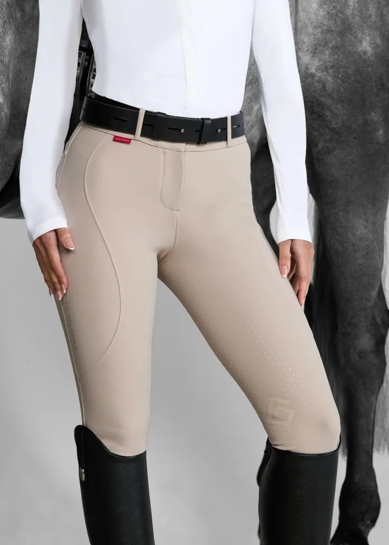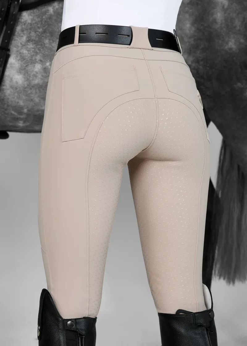 Experience unparalleled comfort and style with the Aztec Diamond Mid Rise Full Grip Seat Breeches. Designed for the modern equestrian, these breeches are crafted from premium functional sports fabric that offers a mid-weight feel, ensuring durability while remaining breathable and sweat-wicking. The innovative four-way stretch allows for exceptional shape retention, making them perfect for any riding activity.