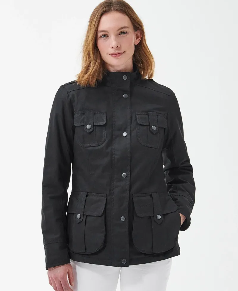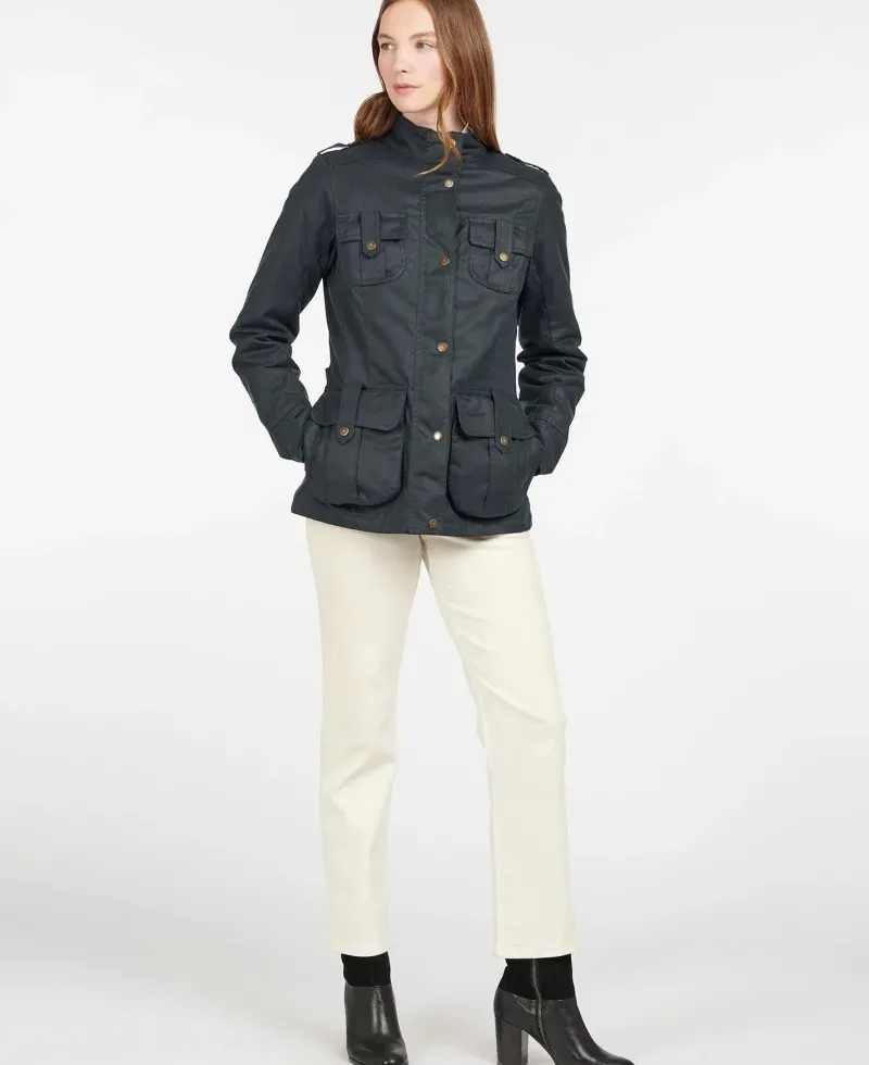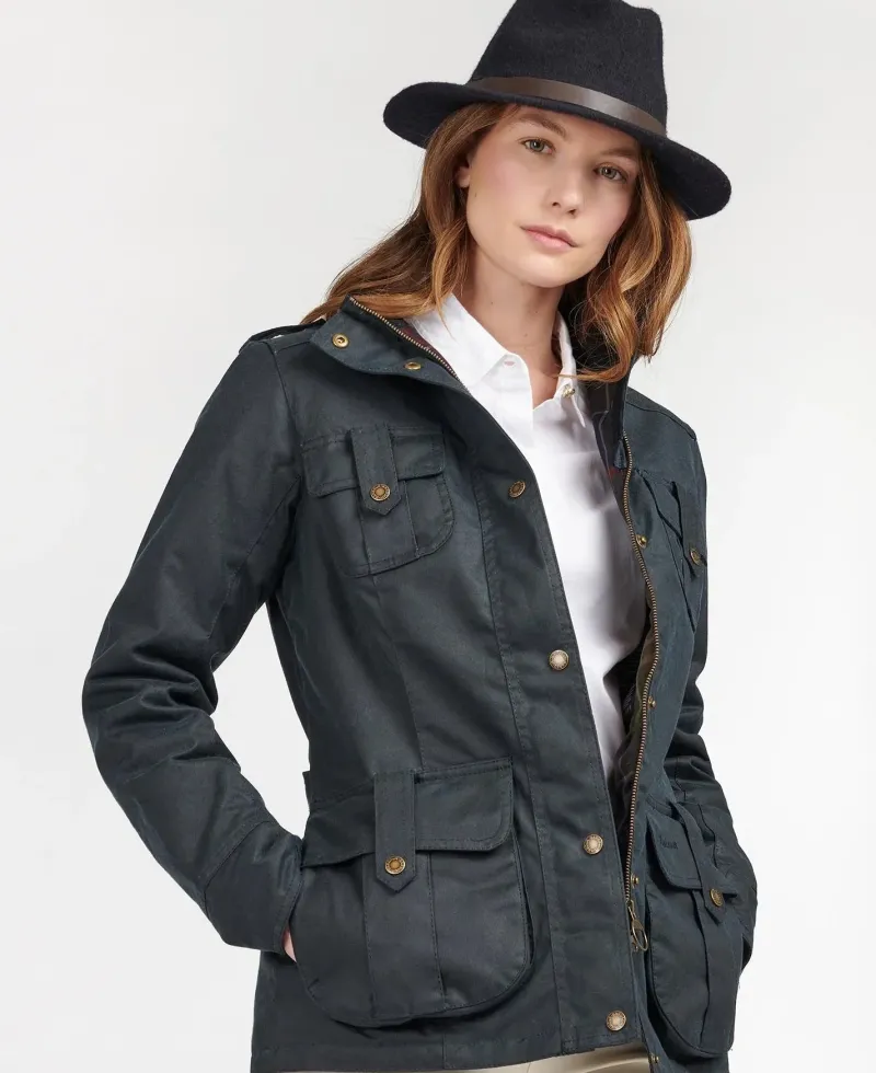 An update on the classic Defence waxed jacket, this version is delivered in a heavier-weight waxed cotton with a warm lining to help protect against the colder days. Styled with shoulder epaulettes and four stud-close frontal utility pockets, it’s finished with a lining in signature Barbour tartan.