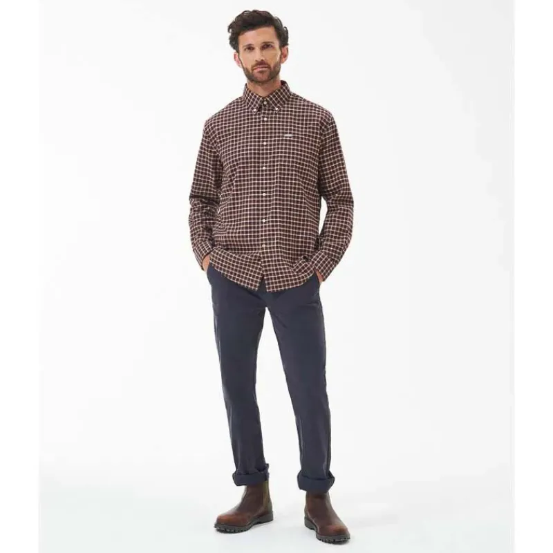 In a classic small scale country check print, the mens Barbour Tanlaw Shirt exudes timeless style. With handy long sleeves and a button down collar, the shirt is cut from a premium broken twill cotton with brush finish for a luxury feel. This shirt looks great when paired with a gilet and jeans or tailored trousers for a versatile wardrobe option.