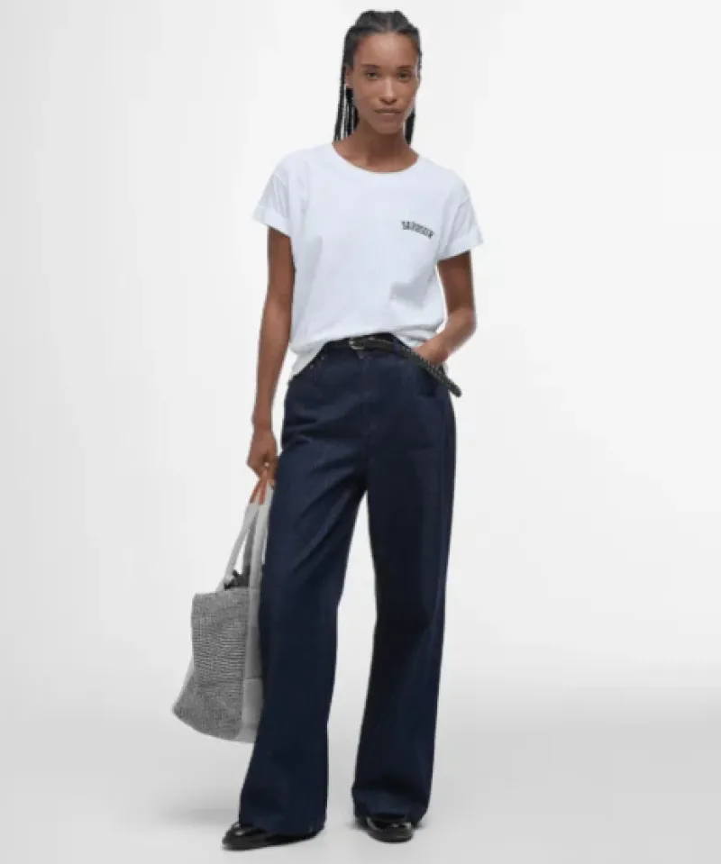 Stay comfortable and stylish with the women’s Barbour Kenmore T-Shirt. Designed with a dropped armhole for a laid-back feel, this tee offers plenty of room for movement. The soft fabric is perfect for all-day wear, whether you’re at home or out with friends. The Barbour varsity embroidery on the left chest adds a touch of sporty flair, making it a great choice for casual outings. Pair it with jeans or shorts for an effortless look. This t-shirt is easy to care for and will quickly become a favourite in your wardrobe. Enjoy comfort and style every day!