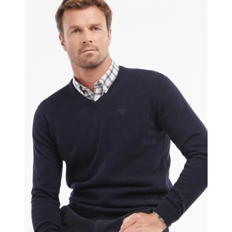 Crafted in pure lambswool, this V-neck men’s jumper is superbly warm and timelessly stylish. Finished with a Barbour label to the side seam.
