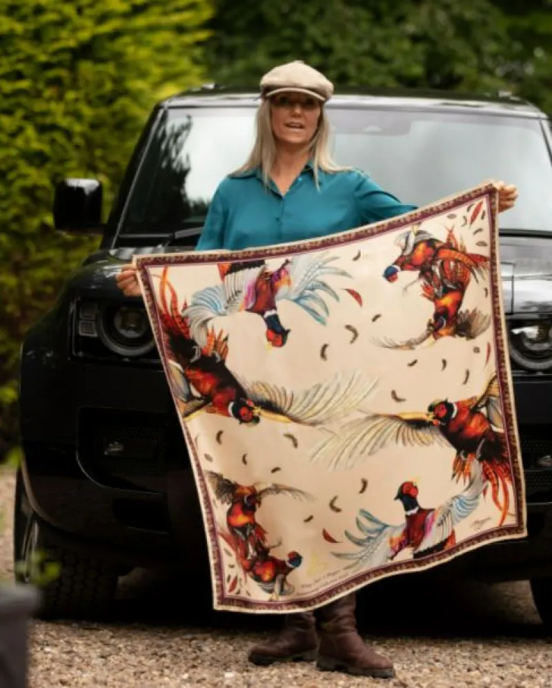Wing and a Prayer Champagne and Mulberry Large Square Scarf.