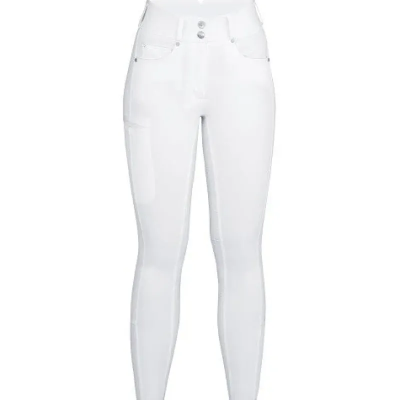Ultimate stretch high waist breeches, design for training and competing! These breeches incorporate a useful subtle phone pocket to the right thigh as worn, with careful seam positioning to the garment for ultimate comfort in and out of the saddle. Other features include hidden support to the high waist, jean style front pockets, Equetech jean style rivets, subtle matt silicone grip to seat, zip and fly to front, belt loops and Lycra panel to hem.