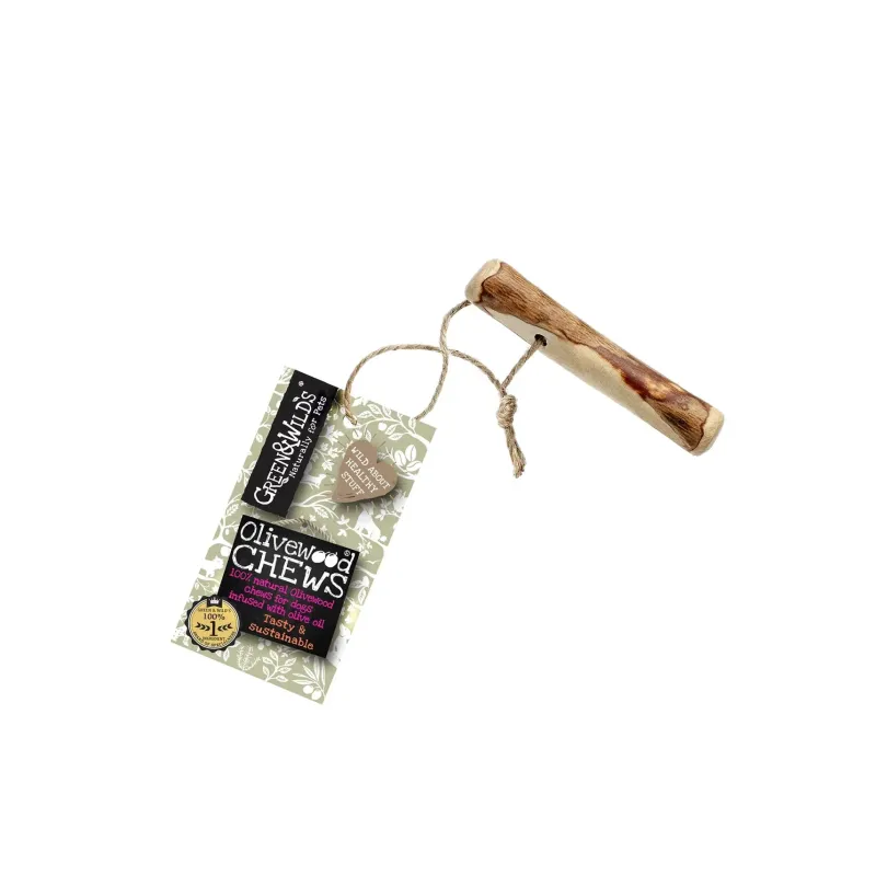 Every dog has a natural need to chew. This often starts when they are puppies, and progresses to chewing our table legs and shoes! Chewing gives natural dental care and occupies the dog. Our Olive Wood chews are a great way for your dog to satisfy his chewing instincts.