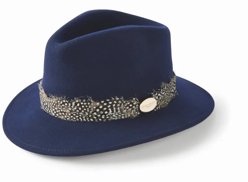 This eye-catching wool felt Suffolk Fedora acquires many similar elements to the pheasant feather wrap, but rather hand finished with an exquisite guinea feather wrap.