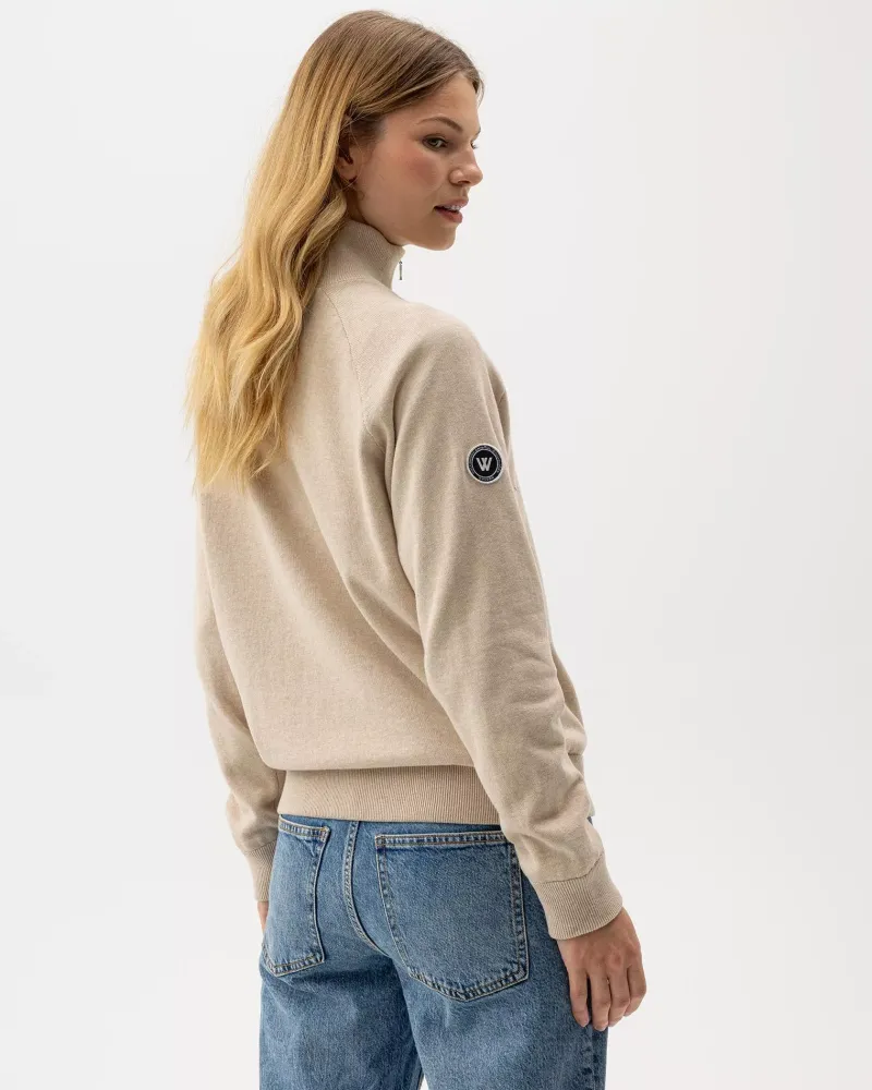 Knitted sweater with windproof lining in 100% cotton. A finely knitted basic sweater with a high collar and zipper. Regular fit with ribbed cuffs.