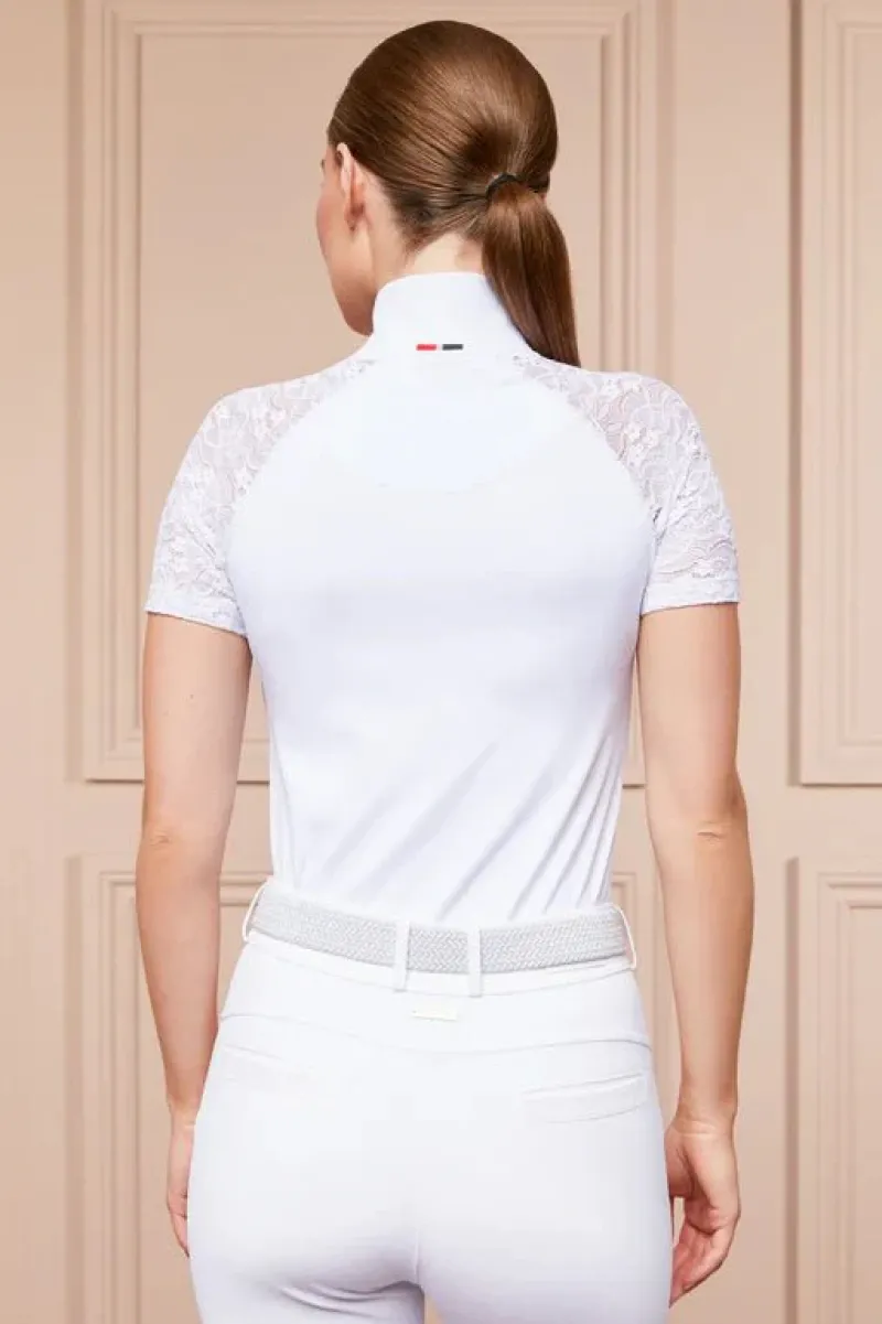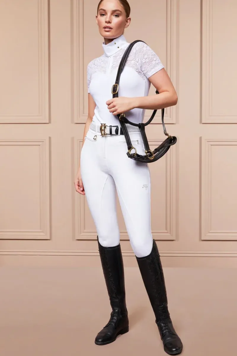 Expertly crafted with all riders in mind, this base layer has been designed with a cooling fabric and super soft touch to ensure breathability and comfort at all times. The elegant lace short sleeves makes this piece both practical and stylish. Featuring our HC embroidery on the collar and gold poppers.