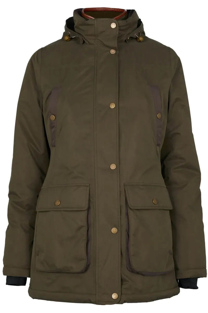 The outer coat is made from a super soft touch and durable microfibre fabric that has been bonded internally with a fully waterproof and breathable membrane, giving the coat fantastic technical capability whilst maintaining its beautiful & soft looking outer fabric. Filled with Sorona synthetic down providing insulation, warmth and breathability. The outer coat is finished off with a stow-away hood to the collar and beautiful burnished brass subtle hardware and embroideries.