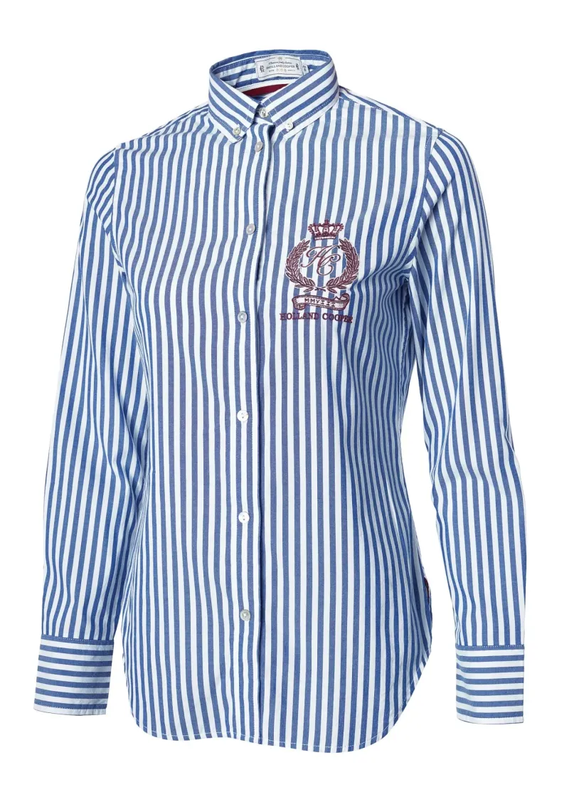 With heritage Oxford button-down styling and preppy yarn-dyed stripes, this shirt is a modern take on timeless sophistication. Crafted from a brushed cotton fabric with a sharp, tailored silhouette, this shirt is a perfect balance of tailored precision and contemporary style. Detailed with delicate crest embroidery to the chest with Jacquard taping to the internal seams. Elevated with branded shell buttons.
