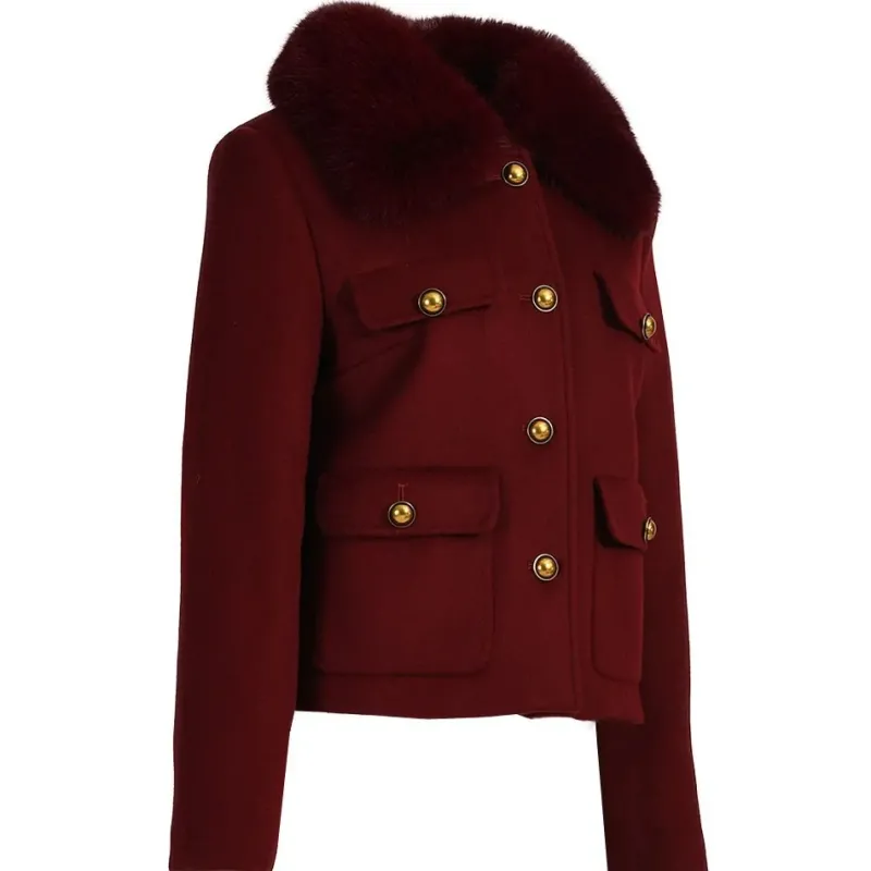 The detachable faux fur collar adds an extra touch of glamour to the coat and allows for some versatility in styling, depending on the occasion or personal preference. This feature also makes the coat more practical, as it can be easily removed and re-attached as needed.
