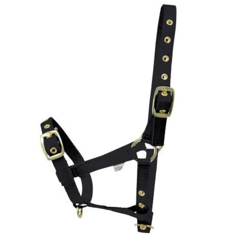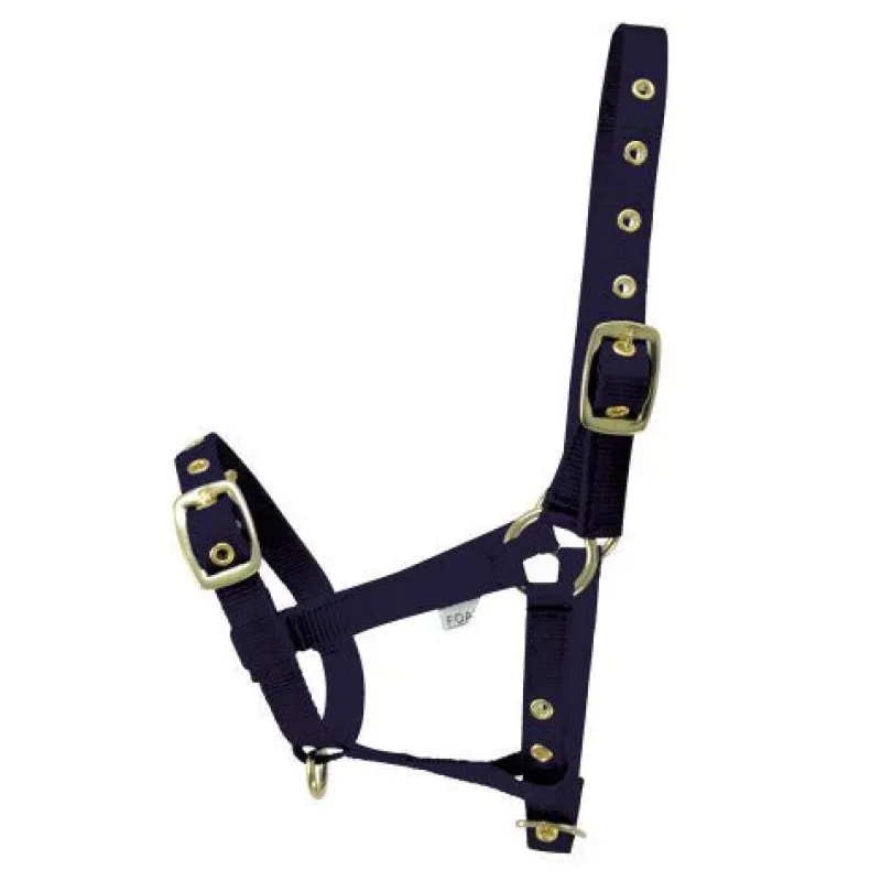 A strong and practical everyday, three buckle, webbing head collar with brass fittings. Fully adjustable so you can adapt it to fit as the foal grows.