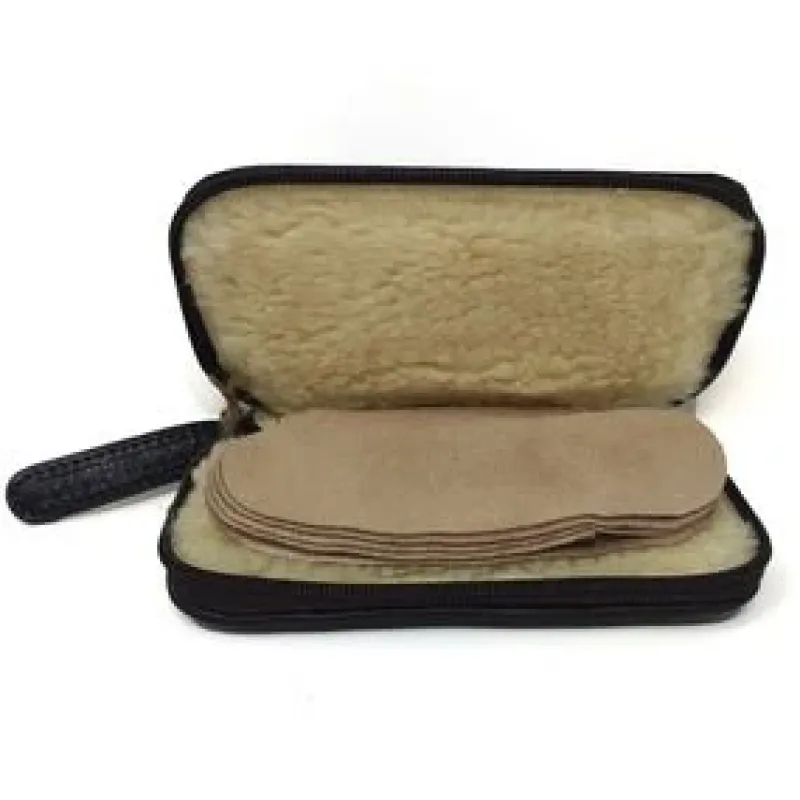 Natural full-grain leather fly wallet with a thick, soft fleece interior.