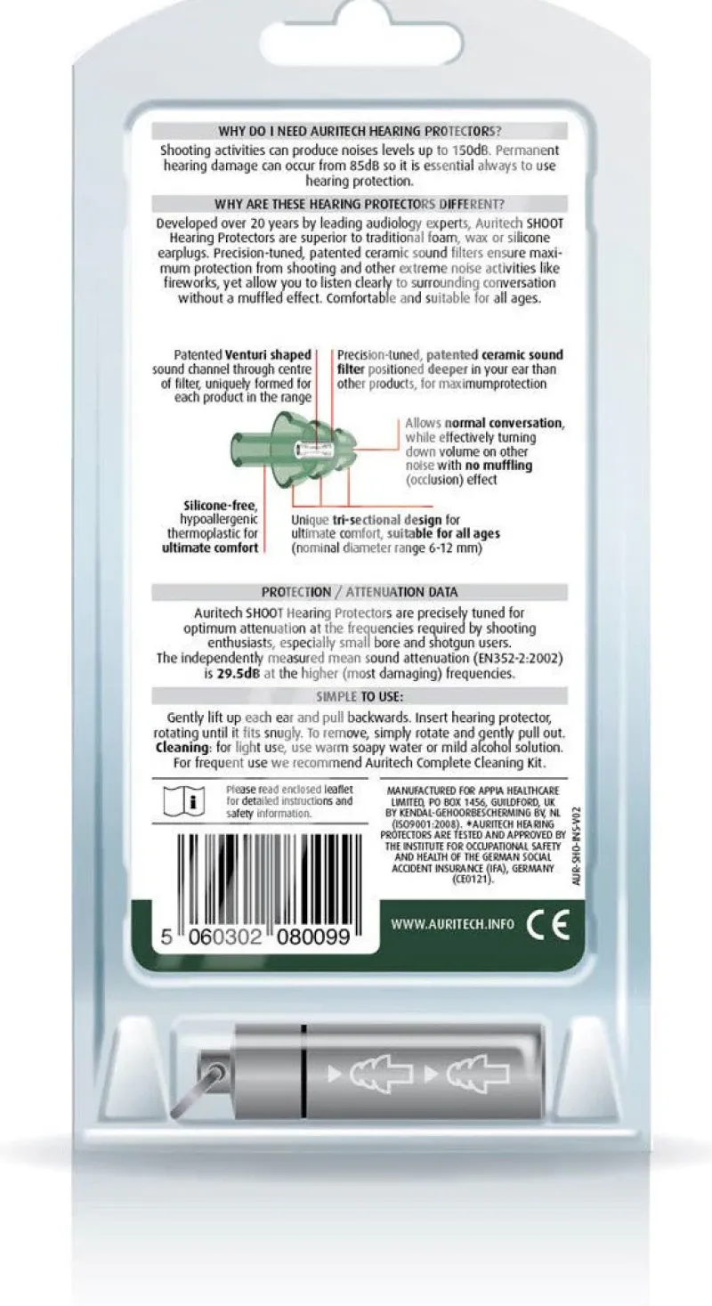 Developed over 20 years by leading audiology experts, Auritech’s Hearing Protectors for shooting are superior to traditional foam, wax or silicone earplugs.