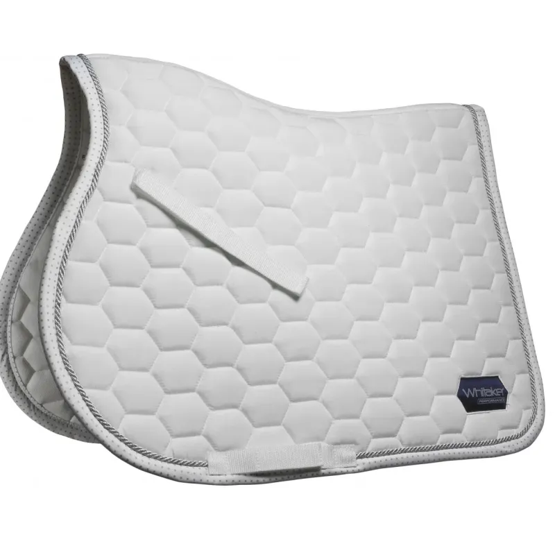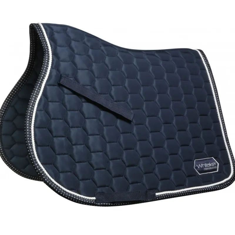 The San Francisco saddle pad is a high-end accessory, offered in white or navy and featuring a discreet, reflective satin trim.