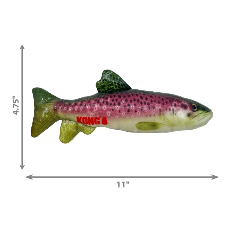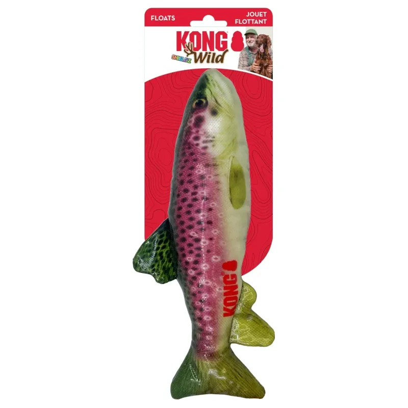 KONG Shieldz Wildz Fish ultra-durable training tools are triple coated and sealed to last through epic water retrieval sessions to hone hunting and dock diving skills while satisfying natural instincts with interactive fun. The hi-tech coating helps these fish float for easy grabbing. Heftier than most dummies for durability and longer-distance tosses for conditioning, these realistic fish come in three North American favorite species that include every detail (except fishy fragrance).