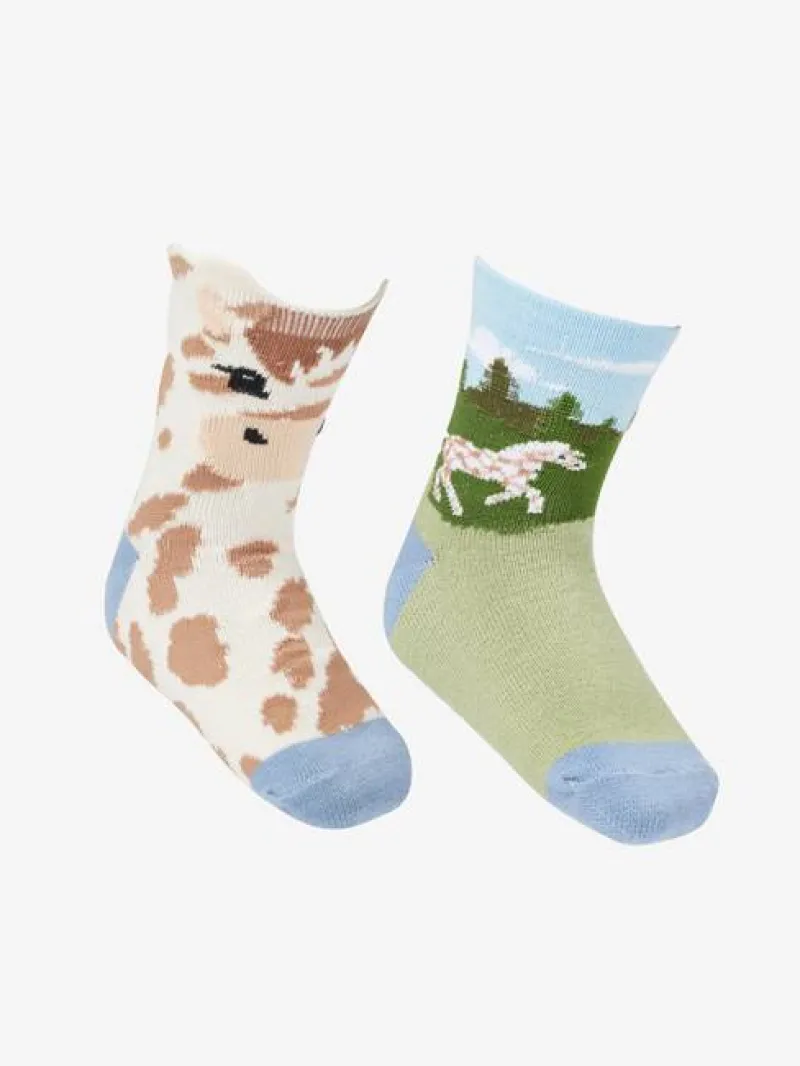 These super cute cotton socks are the perfect way to keep toes toasty. With two fun designs – one with the face of Mini LeMieux Pony Dakota and one depicting Trigger running through the forest – these character socks are soft, warm and tons of fun for little feet.