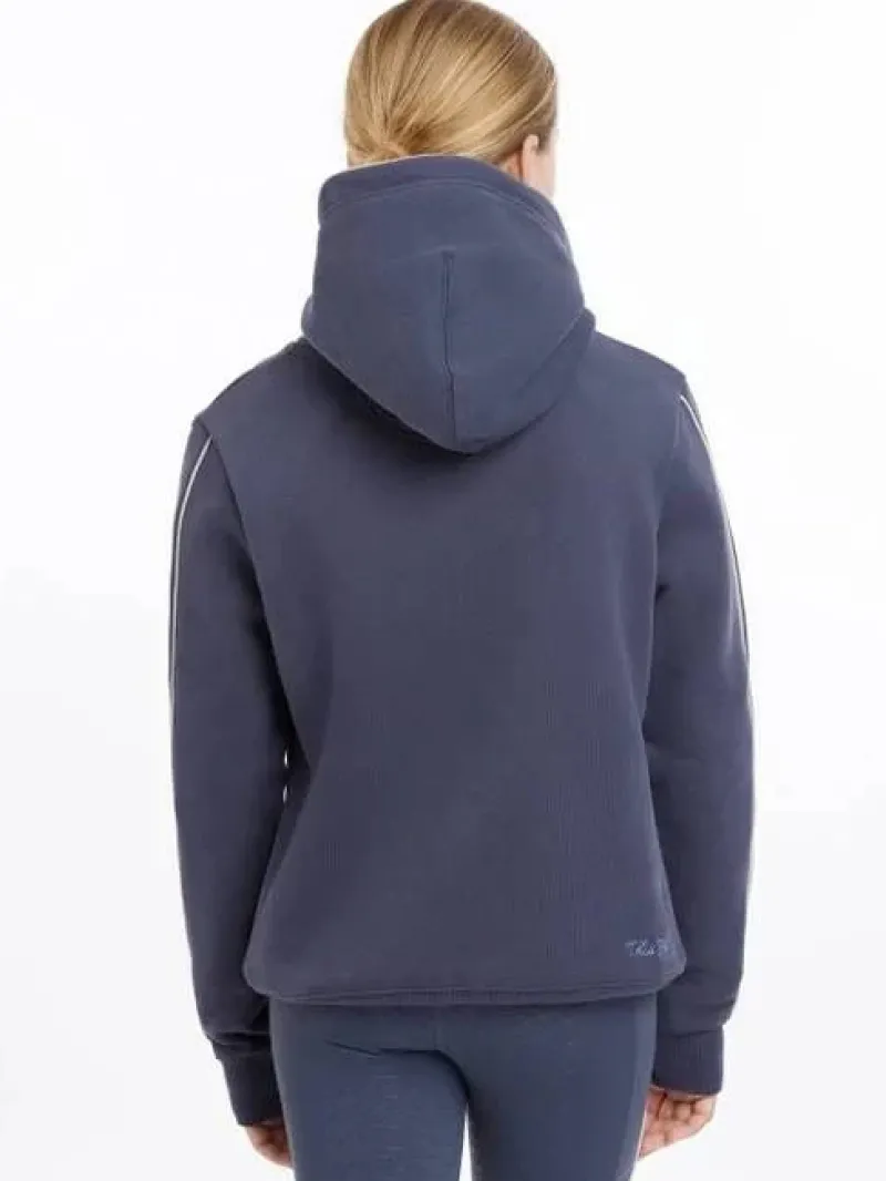 Designed in brushed-back sweatshirt fabric with a LeMieux logo chest graphic and smart yet subtle contrast piping on the arms and hood, it’s an elegant yet relaxed piece. A hidden kangaroo pocket and subtle embroidered ‘This Esme’ autograph complete the look.