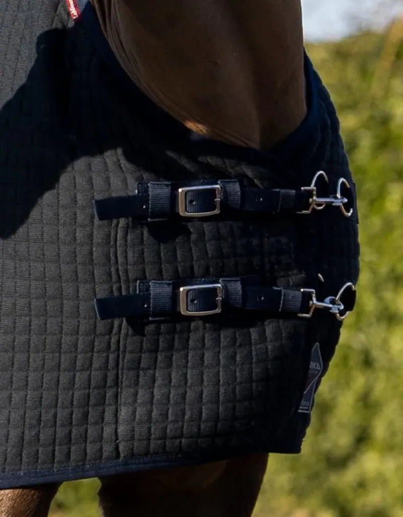 Please note this rug is not designed as a outer stable rug. Horses should not be left for extended periods in the stable or over-night. The outer fabric is a breathable wicking material and not a rip-stop denier, therefore it can snag. However, this rug can be used as an under rug. Due to the technical nature of the fabrics in this rug, we recommend that these rugs should be machine washed in a large wash bag to protect the rug from any rough edges within the washing machine.