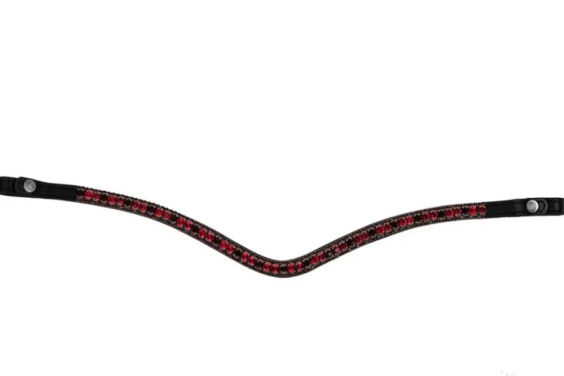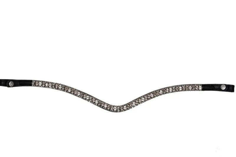 Make your horse shine with this curved Dlux browband with three rows of sparkly grey rhinestones. The browband is equipped with snap buttons with a Montar logo. The browband is available in black leather.