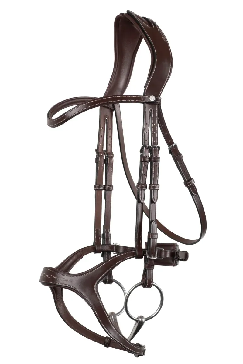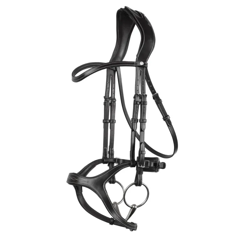 New and innovative ergonomic bridle in black Montar leather and stainless steel buckles. When the comfort of the horse has first priority!