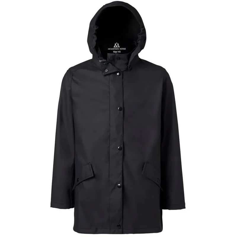 Is your child ready for the rain? Now they are, with our waterproof raincoat, featuring welded seams for maximum protection. The detachable hood and large front pockets offer convenience and functionality, while the riding slit at the back and reflective details provide added safety and visibility.