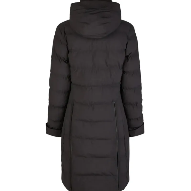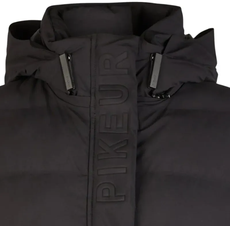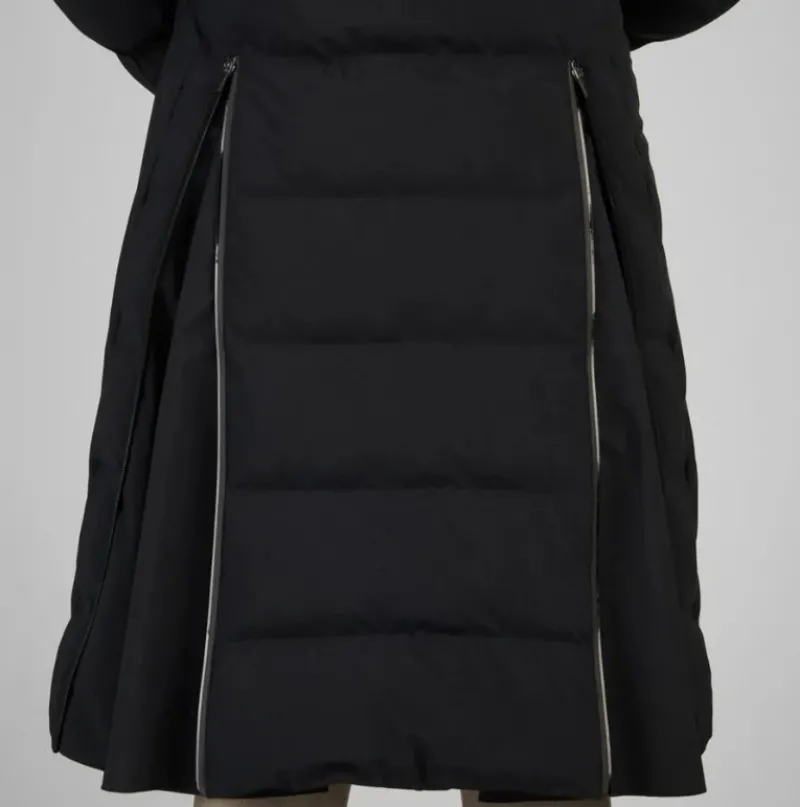 This coat is equipped with an adjustable hood featuring cord stoppers for a snug, customisable fit. The zippers are designed for smooth and effortless fastening, while turn-up cuffs with popper adjustments offer additional protection against the cold. Practicality is at the forefront with applied flap pockets that feature MAGNET CLICK closures, along with additional zip pockets on each side for secure storage.