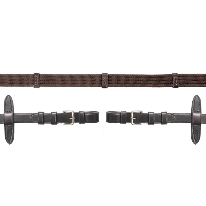 Classic WEB REINS with hook and stud closure, made out of a 19 mm wide web material with leather bars. The reins are equipped with rein stops for a safe use of a martingale.