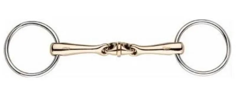 The Sprenger WH ULTRA Loose Ring Snaffle made from sensogan is a double jointed bit, featuring a central link which is angled forward by 45 degrees and features a unique roller in the centre section. How the bit is made with its copper, manganese and zinc mixture its proven to have a positive afect on the horse. The WH ULTRA uses the tongue’s sensitivity to touch to achieve optimum effect without being sharp or harsh on the horse’s mouth. The WH ULTRA’s unique roller teaches the horse to quickly accept the bit, focus its attention and is highly recommended for horses that are unresponsive to the rein aids. This bit allows them to soften over their topline and perform relaxed and in harmony with the rider.