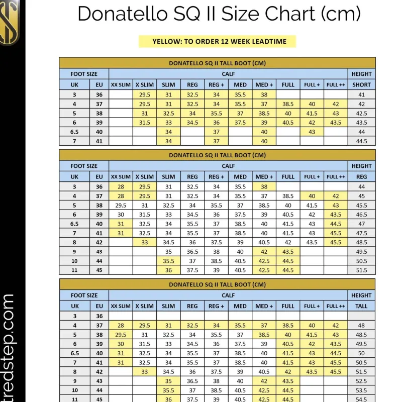 Some sizes are special order. Please see the size guides for more information and consult the colour key of the size guides for approximate lead times of boots once ordered.
