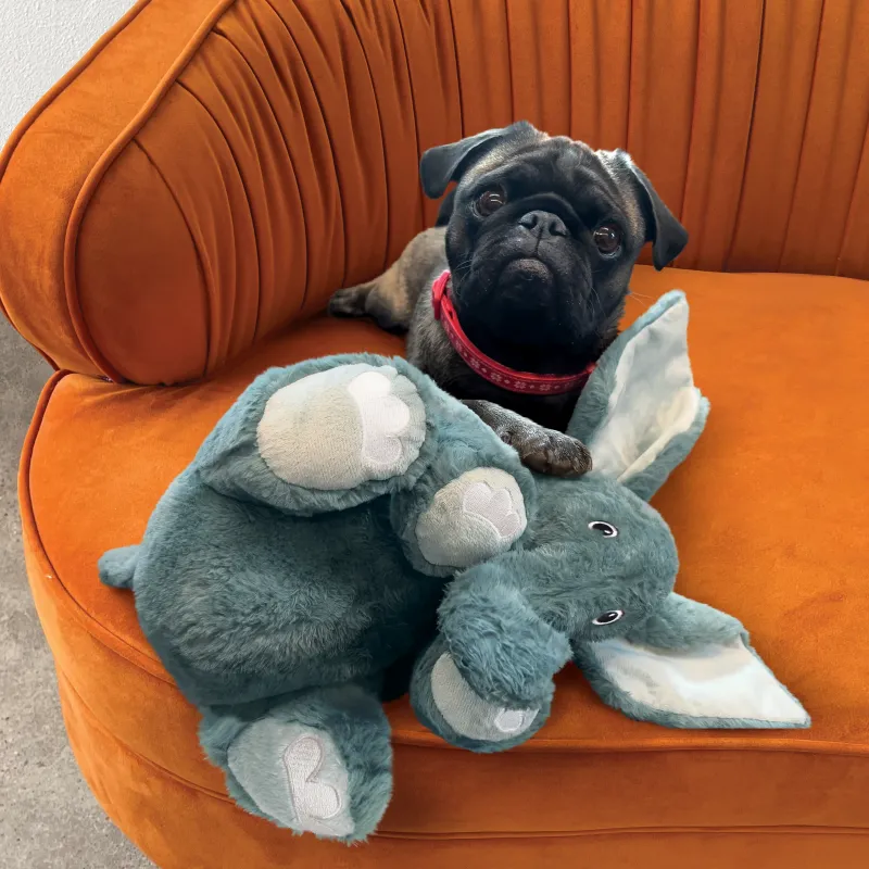 KONG Comfort Kiddos Jumbo Elephant’s ginormous size means extra-large adventures with a playful pachyderm whose squeaker can be removed for quiet play. Big, floppy ears and trunk make shaking even more fun and the soft, snuggly plush invites cuddles with a big naptime buddy between bouts of elephant-sized action.