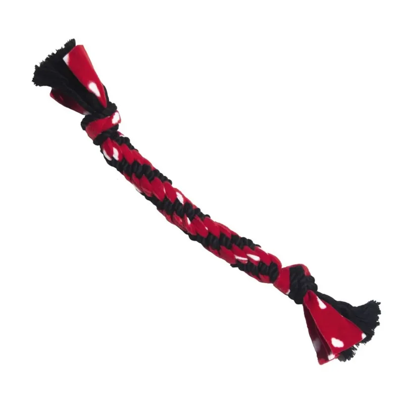 Has a unique braid of cotton and fleece that provides an uncompromised stretchy delight that is gentler on a dog’s mouth. The durable material ensures that natural chewing behaviour is rewarded again and again with the added benefit of helping clean teeth. The two knots double the fun while making games of instinctual tugging even more engaging.