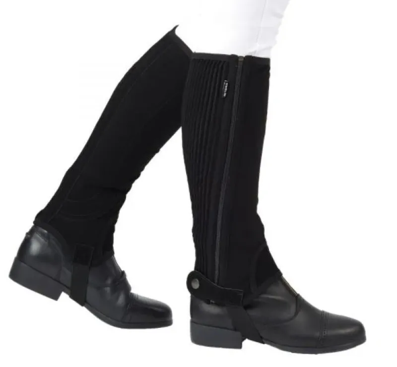 The Dublin Easy-Care Half Chaps are made from a synthetic suede material with an elastic calf to ensure a terrific fit and extra comfort with a secure top to bottom zip closure on the outside of the calf, and a popper fastening at the base for added security, they are easy to care for, durable and machine washable.