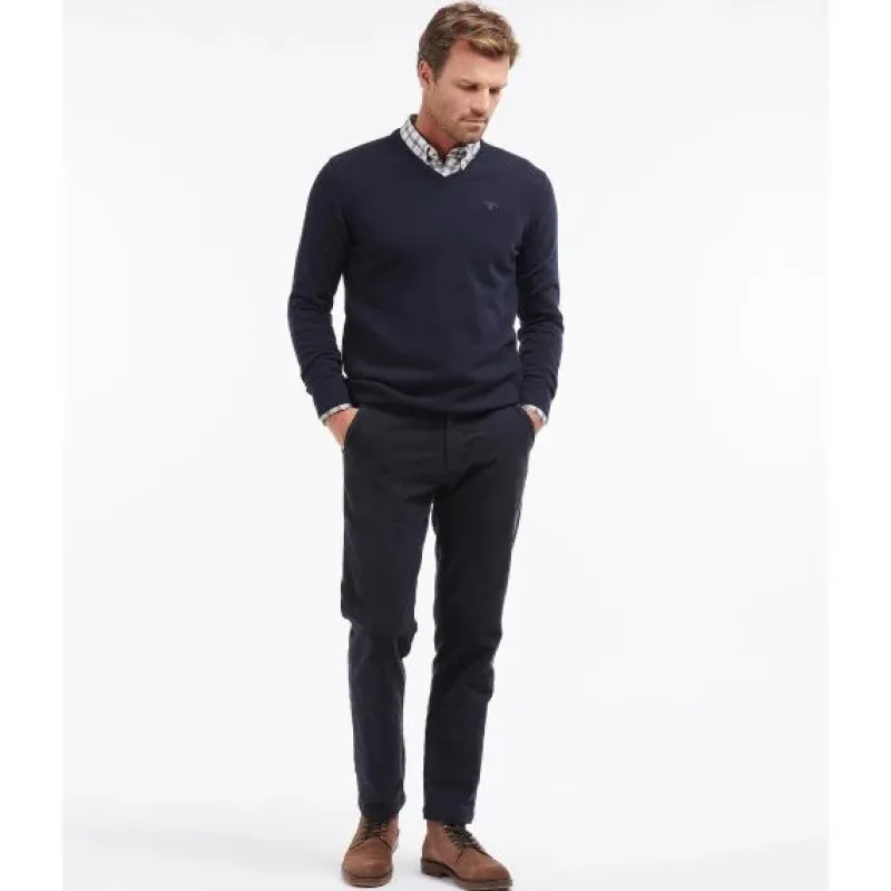 Crafted in pure lambswool, this V-neck men’s jumper is superbly warm and timelessly stylish. Finished with a Barbour label to the side seam.