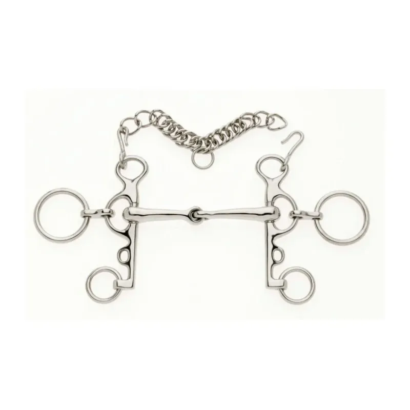 Jointed mouthpiece exerts pressure on the bars and roof of the mouth. Designed to be used with two reins and ideal for the show ring for horses that…