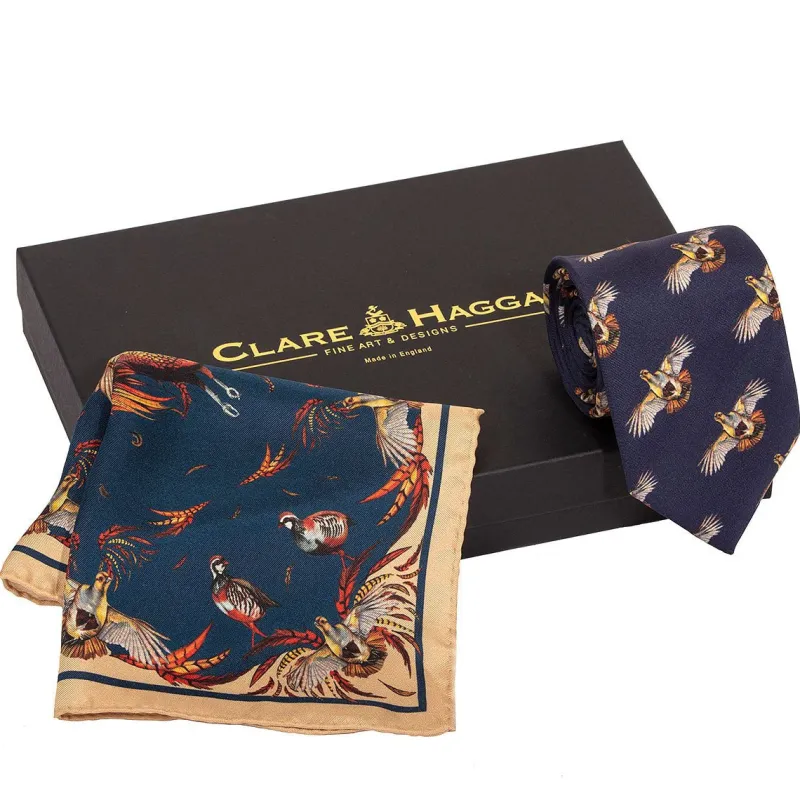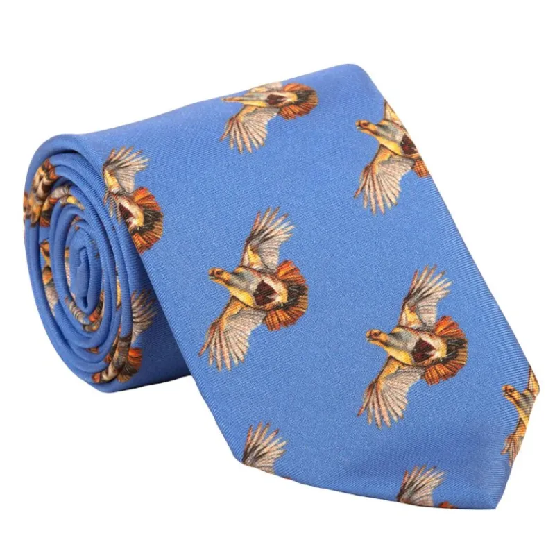After the phenomenal success of the first grey partridge tie Clare Haggas has been persuaded by the customers to bring back a new version of it. This design has slightly larger birds and they are flying closer together. The English, or grey partridge is the epitome of the British gentleman. This beautiful little bird is respected by all and loved throughout the world.