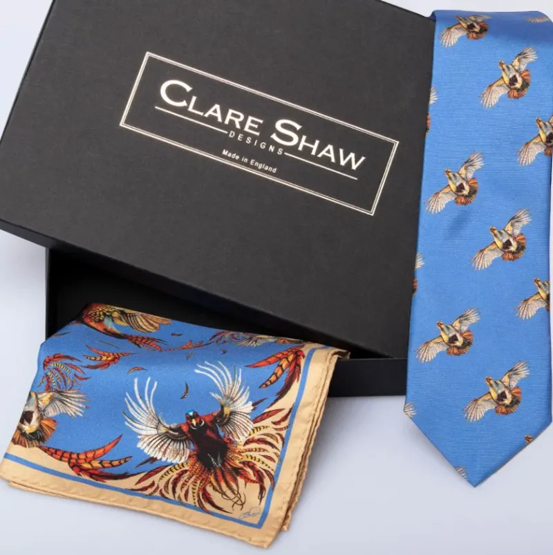 The silk ties are all limited edition and are accompanied by a signed and numbered certificate of authenticity. They are printed in Evesham on the finest twill silk and then hand finished by a team of artisans in a traditional family run mill in Suffolk. They are then lovingly packed into bespoke boxes by Clare Haggas here in Lincolnshire.