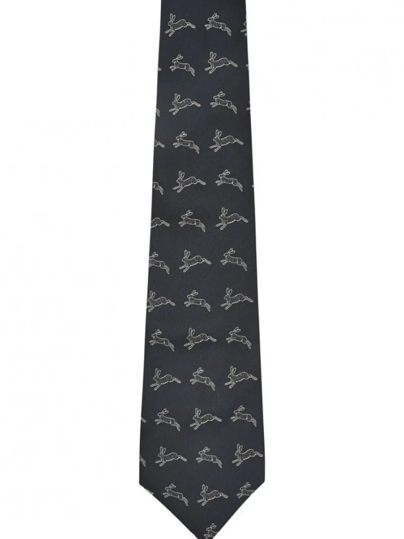The 100% silk Lacken tie has a hare motif hopping across it, a lovely country emblem suitable for country pursuits across the board. A ideal for a special touch at a wedding with morning suit or special festive flash.