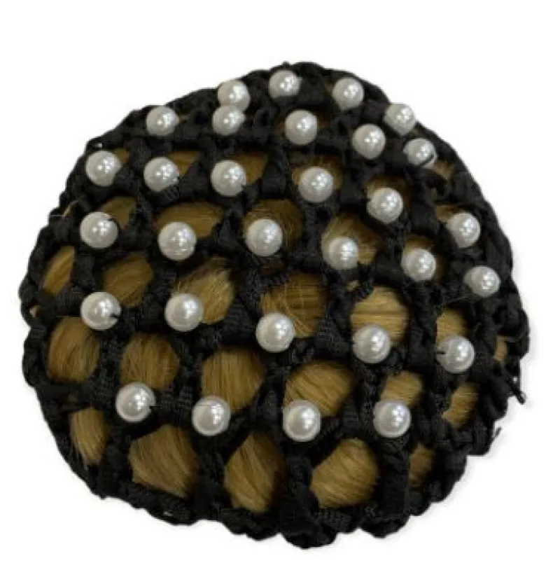 Durable bun net keep your bun neat and tidy. Elasticated design with pearl embellishments. raylon + trims