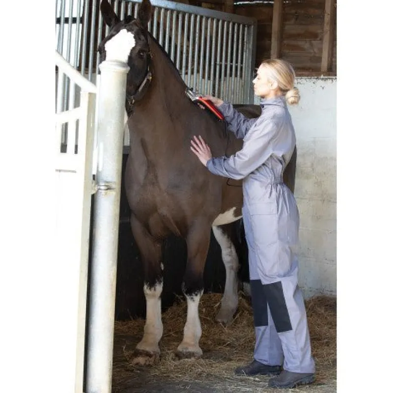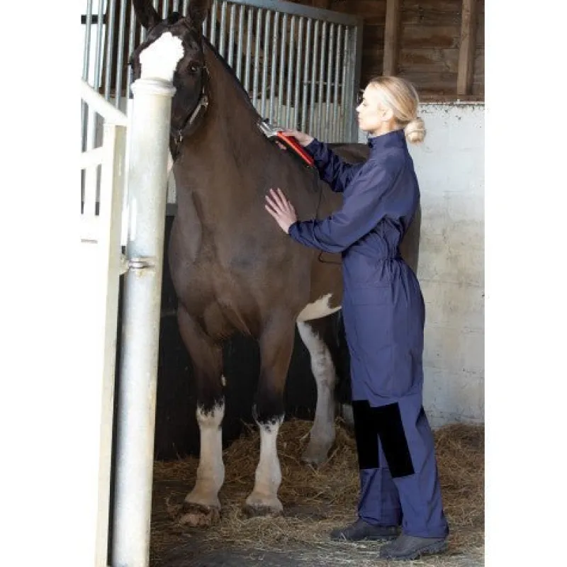 Exclusive to Equetech, these coveralls / overalls have been designed by a professional horse clipper and an absolute must have item for any horse owner and groomer! Manufactured from durable poly/cotton with a tight weave to stop hair transferring to the body. Other features include an elastic draw cord neck to stop hair getting in through your neck opening, water resistant reinforced knee panels, front flap pockets to keep treats and oil in, elastic cuffs to stop hair getting in via your sleeves, back vent to allow shoulder movement whilst clipping and a comfort elastic waistband. These are the ultimate clipping overalls, lightweight for all year round clipping and machine wash with quick drying properties! Available in XS-XXL as standard Registered Design No. 6175955