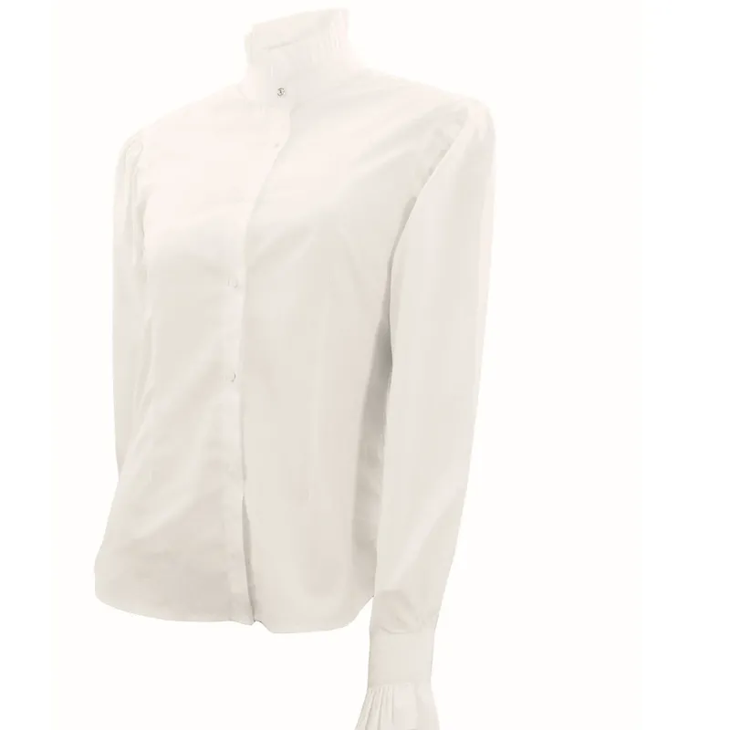 Beautiful crisp blouse incorporating an exquisite pleated collar and cuffs with contoured panels with darts for a flattering fit. Box pleats to cuffs and collar. Made from 5% Lycra® for complete freedom of movement