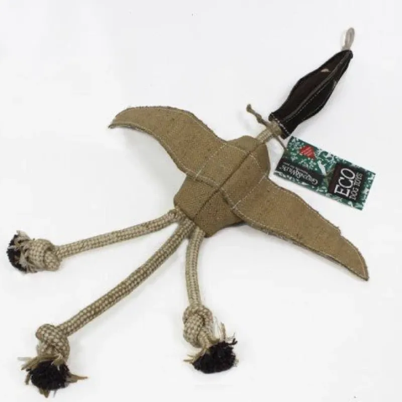 Desmond the Duck is made fromĀ four layers of jute twin stitched over recycled cotton and jute rope, a toy (and a friend) for you and your dog. A great toy for throwing, dogs can have hours of fun with Desmond.
