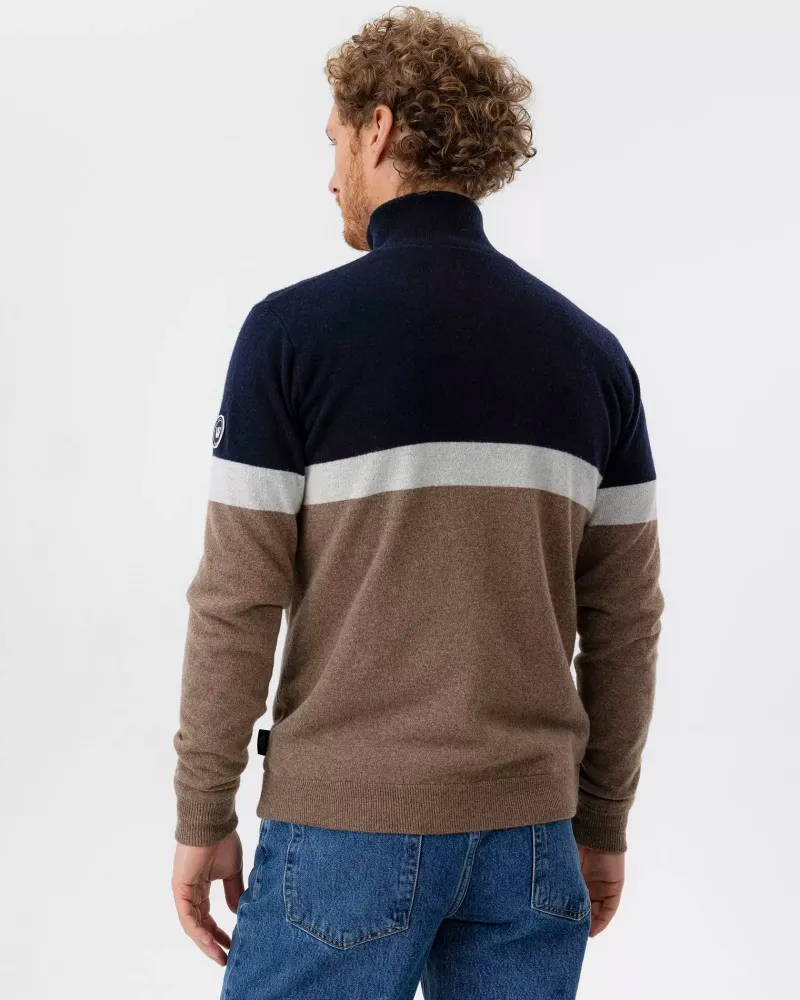 Knitted windproof sweater in 100% soft merino wool. Rib knit collar with zip and rib knitted endings.