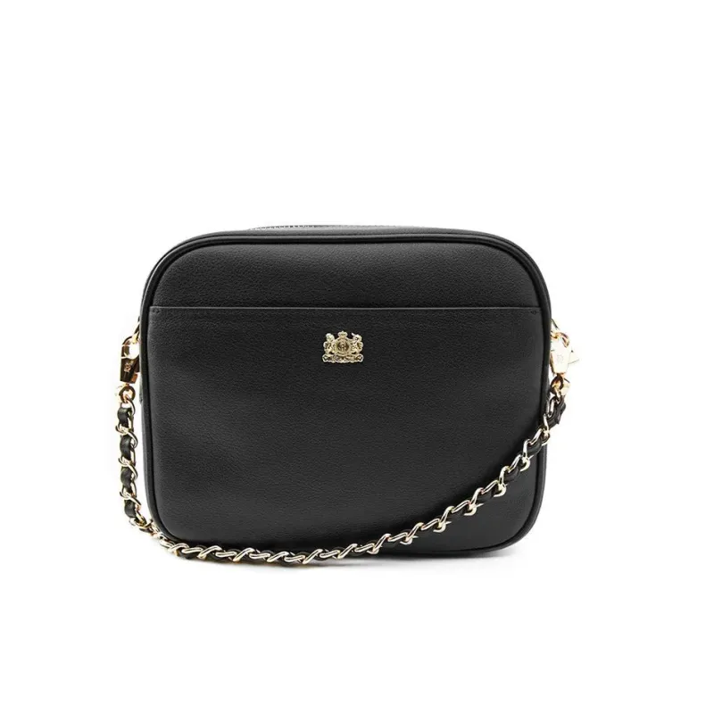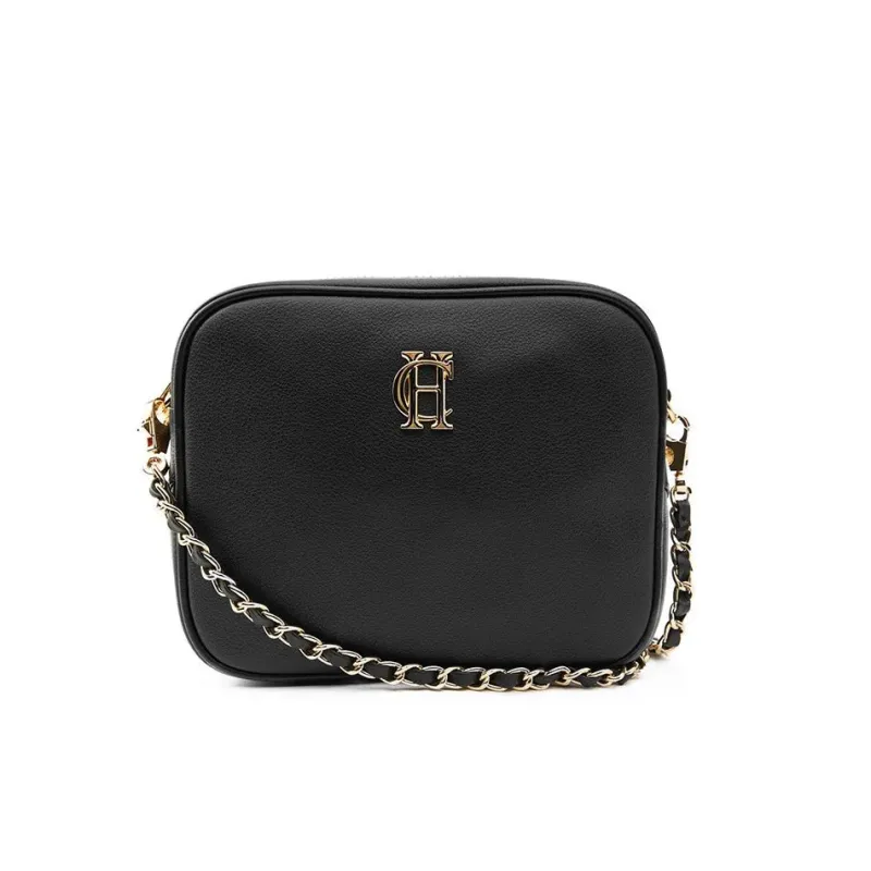 Designed with a classic camera bag shape from premium leather, this bag has been created with a sleek compact profile for ensuring your valuables are kept safe. With an elegant chain shoulder strap with HC trim & bold HC logo to the front.