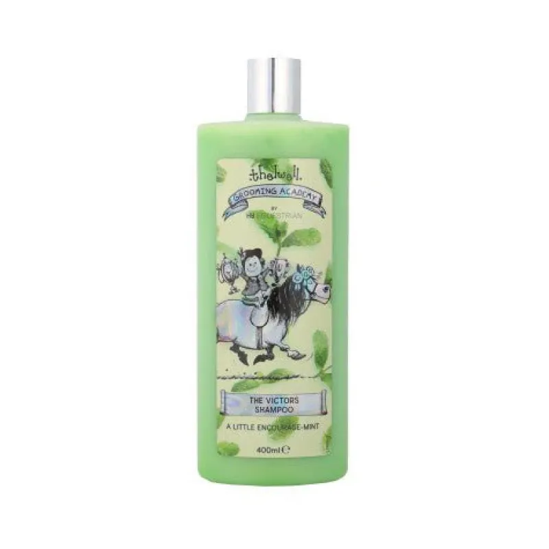 A little encourage-mint! Create an award-winning turnout with the Thelwell Grooming Academy Victors Shampoo by Hy Equestrian. This minty fragranced antibacterial shampoo contains a fusion of natural tea tree oil, peppermint extracts and avocado oil to gently but effectively clean even the dirtiest of ponies! Rich in antioxidants and vitamins to soothe and naturally refresh the coat, optimising skin and hair condition. Patch test advised before use.