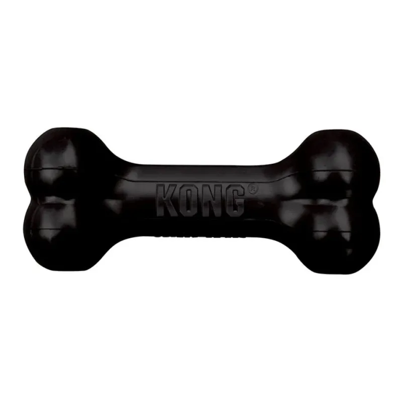 The KONG Extreme Goodie Bone™ toy delights dogs that are the toughest of chewers and that delight in chew sessions. Made from the most durable KONG Extreme unique, natural black rubber formula this bone is designed for determined chewers. The KONG Extreme Goodie Bone™ also features patented Goodie Grippers ™ that turn this entertaining toy into a fun treat dispensing challenge that can be stuffed with your dog’s favorite kibble. Want to extend the chew session? Stuff with KONG Snacks™ and entice with a bit of KONG Easy Treat™.