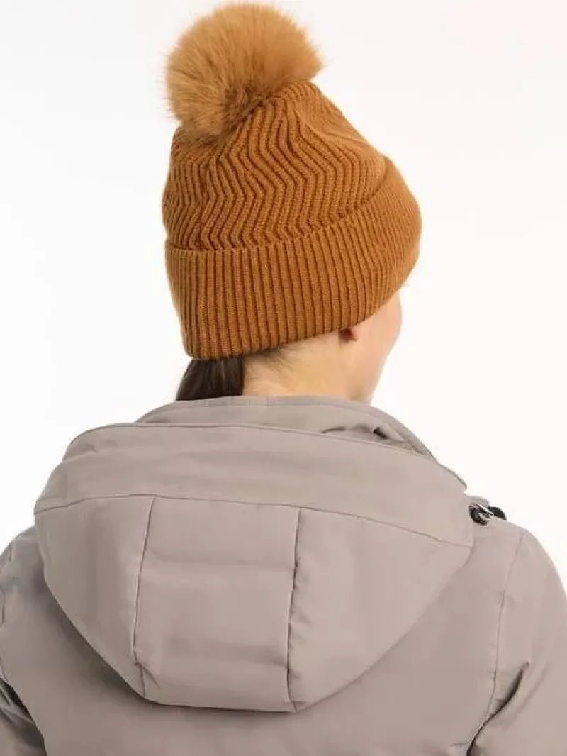 Keep warm in cold weather with this richly coloured beanie hat. A soft fine chevron knit pattern with a ribbed turn-up and a warm faux fur lining keeps chilly draughts at bay. A detachable faux fur pom pom adds an extra wintry finishing touch.