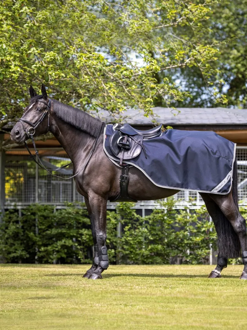 The Lemieux Arika Exercise Sheet has been developed to protect the horse’s coat from the elements and prevent chills during warm up or hacking. Cut to wrap around the saddle and under the saddle flap, providing clearance for uninterrupted movement of the riders leg.