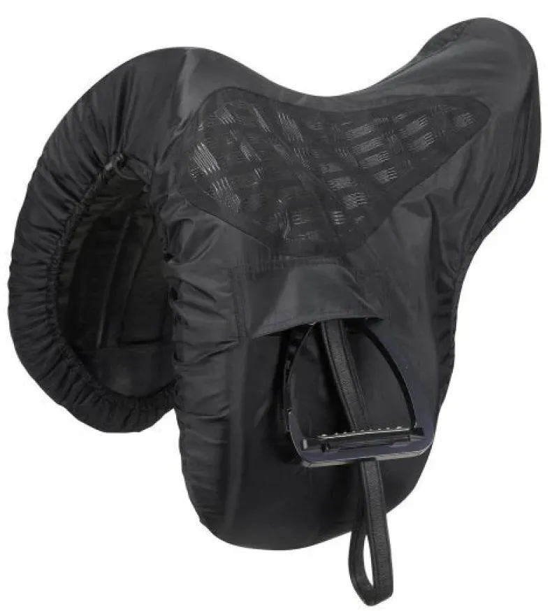 The saddle cover is made of a durable polyester outer with a soft fleece lining to protect the saddle.