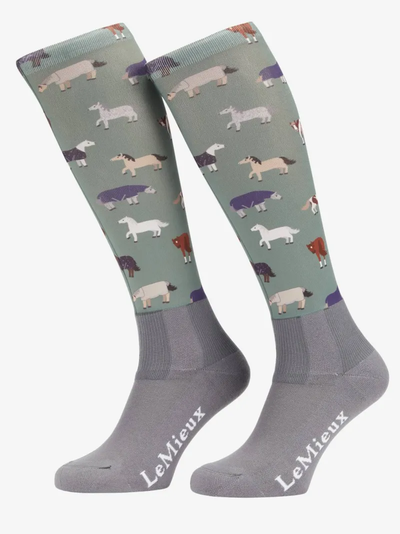 Finished with a sweet print or our mini toy ponies wearing fly rugs, the LeMieux Footsie Socks are fun for your feet!