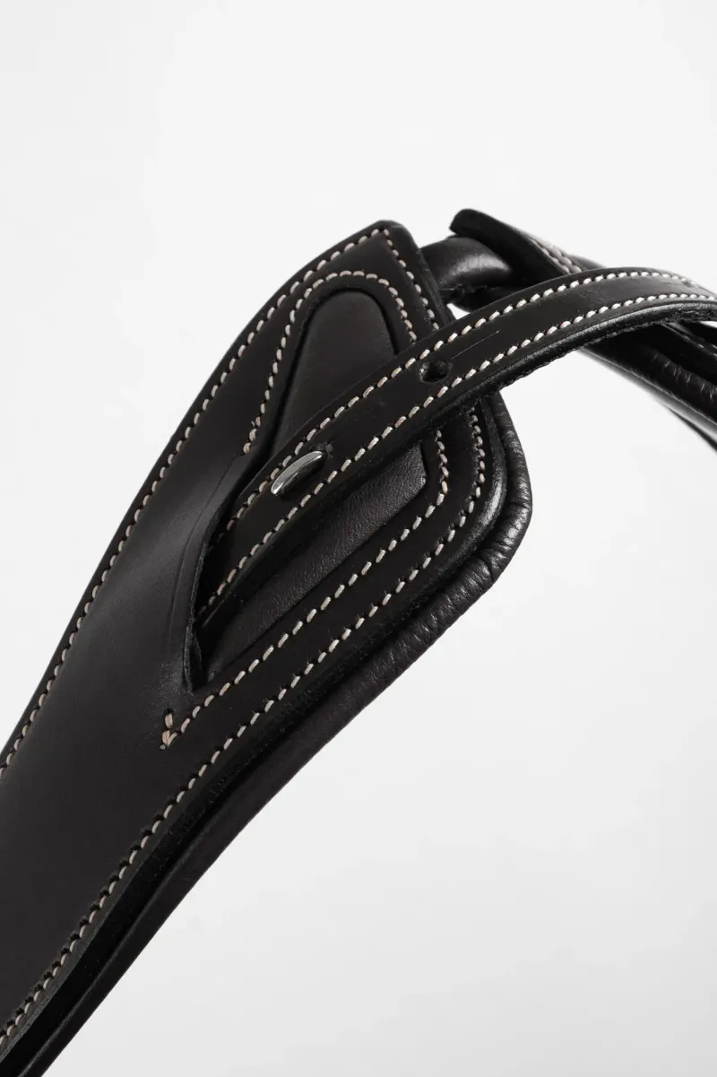 The Monarch noseband is designed to avoid pressure on the sensitive mouth and jaw area of the horse. Soft curves make space for the facial nerves and the big back teeth, while the softly padded cushion protects the jaw bone.